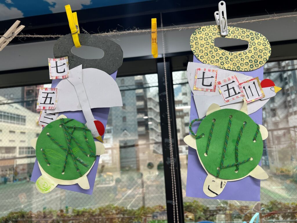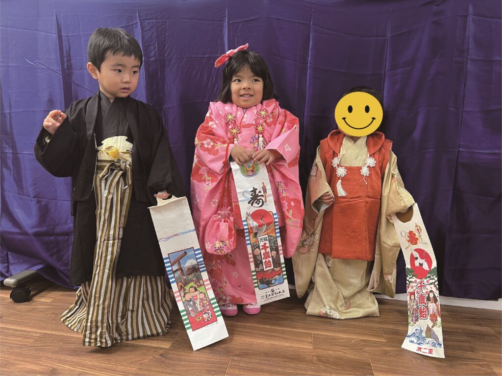 We also celebrated 7-5-3 at school. Everyone made a long candy bag with a crane and a turtle, and they dressed up in a kimono.
