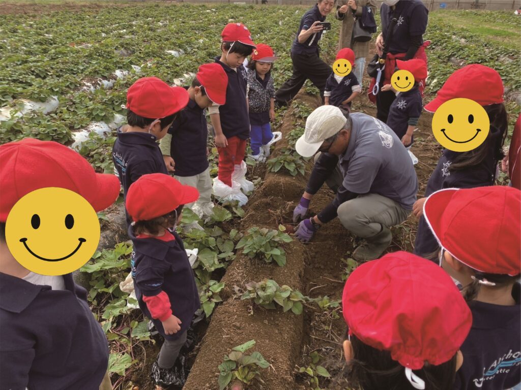 we went on our tabiiku on Oct 23rd. When we got to the sweet potato field, they were so happy and they walked and ran around the field to feel the dirt, touch the vines and leaves, etc.
